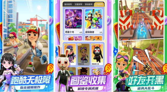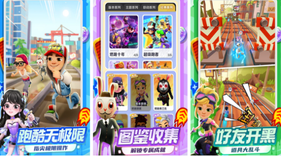 一款高自由度的横向卷轴跑酷作品,以地铁轨道为舞台,通过滑动、上划、下划等基础触控完成跳跃、滑铲、翻滚等动作,实时闪避高速列车与动态障碍物。过程中收集金币、磁铁、喷气背包等道具,逐步提升操作精度与反应速度,对玩家的手眼协调性与节奏把控能力提出持续进阶挑战。