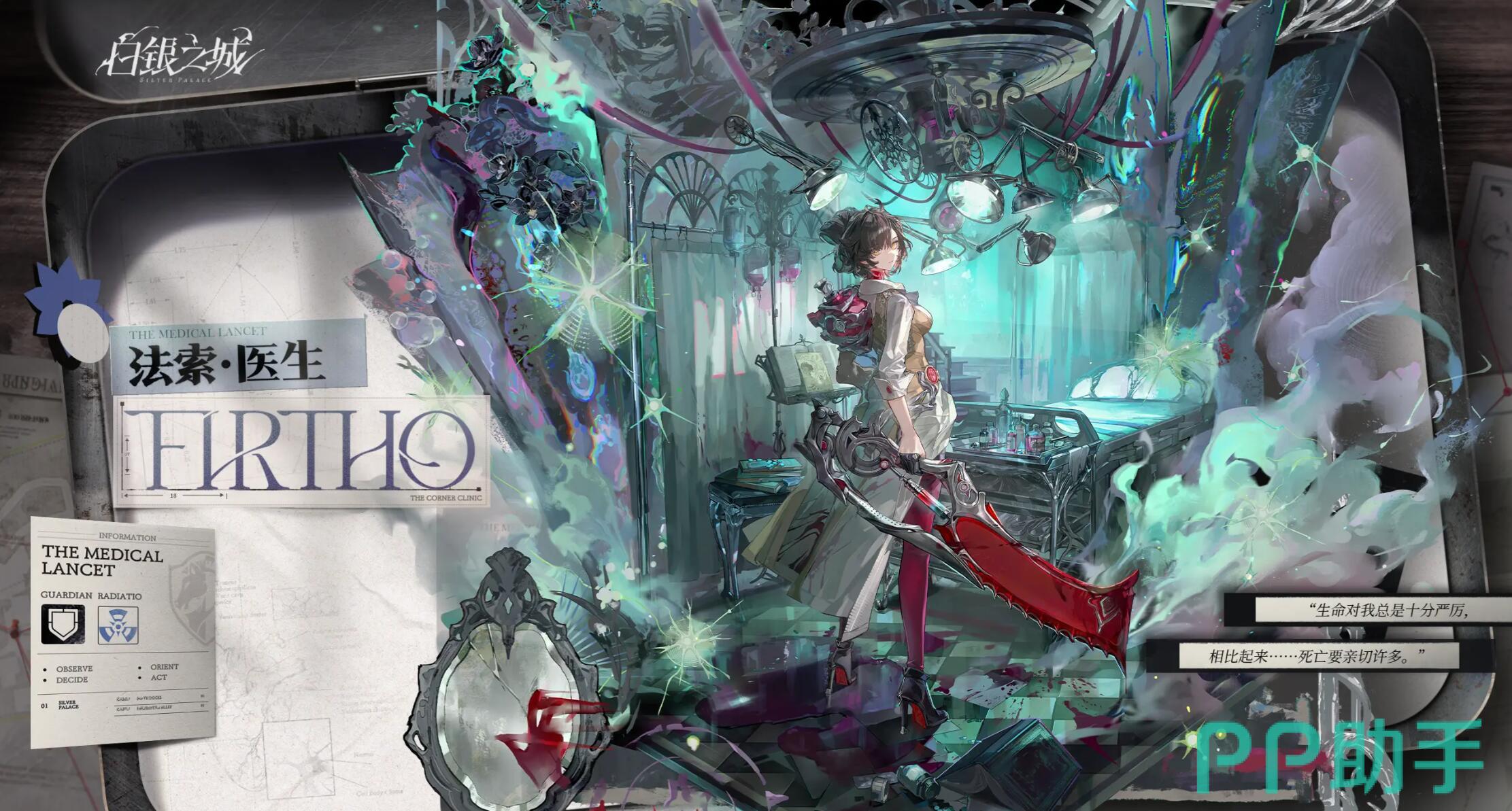 游戏中,法索始终游离于群体之外,其私人诊室深处隐藏着一间加密密室。此处既是医学实验场,也是真相档案库:泛黄的解剖笔记、异常组织切片、未公开的病理模型,共同指向他对“生命阈值”的持续叩问。那柄柳叶刀早已超越手术工具范畴——在危机时刻,它能精准切断敌方关节韧带或破坏机械核心,成为兼具科学理性与暴力美学的标志性武器。他习惯在遗体表征中逆向推演事件链,这种基于实证的破译能力,使其成为推进主线不可替代的关键解谜节点。