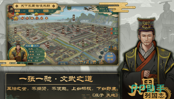 本作时间跨度覆盖西周初年至战国终结,玩家可任选诸侯国开局,通过内政改革、合纵连横、军事征伐等多元路径影响历史进程。例如干预晋国卿族势力消长,阻止韩赵魏三家分晋;或扶持边缘小邦成长为区域霸主。游戏内置超150项可触发国策与历史事件,每一项选择均实时反馈于势力格局、文化倾向与时代走向,形成真正意义上的动态历史沙盒。