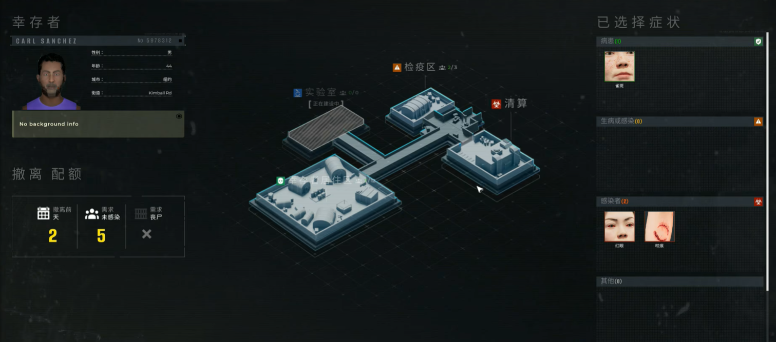 作为前线决策者,你的判断直接决定人员去向与区域安全。初始检疫区仅设4张观察床,务必优先分配给黄色标记人员。建议实行分床隔离制——避免症状交叉影响,便于追踪个体变化:部分人可自然缓解(如退热、止咳),另一些则会持续恶化。重要铁律:任何红色标记个体不得滞留超过48小时;每日清晨须完成清点与处置,确保新收容者入场前,检疫空间处于绝对洁净状态。