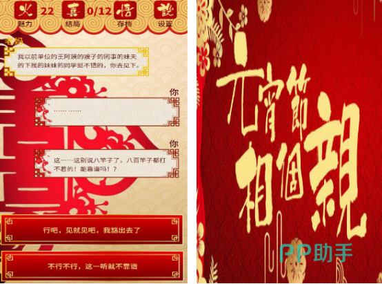 以元宵“走百病”“结良缘”的民俗为灵感,打造沉浸式家庭社交模拟玩法。游戏中设置20余位性格迥异的虚拟亲戚角色,每位均基于真实催婚话术设计对话逻辑。玩家需通过选择回应策略影响剧情走向,达成不同结局分支。既具现实映射意义,也提供情绪缓冲空间,帮助年轻用户提前演练沟通技巧。