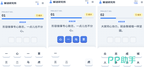 融合文字解析与逻辑推演的创新型解谜产品,关卡机制包含限时通关、线索提示、偏旁拆解、字形重组等多元形式。例如“成语还原”类题型,系统先以白描方式描述成语含义,玩家需从散列汉字中精准识别并组合出对应成语,兼顾知识性与思维训练强度。