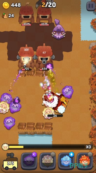 这是一款俯视角塔防策略游戏。玩家操控羊群单位部署于森林地形网格中,每只羊可装配弩箭、投石索或火焰喷射器等三类武器模块,并支持编队协同指令。敌方包含两种狼单位:普通狼(移动速度快、单体伤害中等)与狼王(生命值提升200%,携带践踏范围伤害,受地形减益效果降低30%)。通关关键在于利用树丛掩体限制狼王走位,配合高地火力覆盖形成交叉射界,最终以最小损耗完成守卫任务。