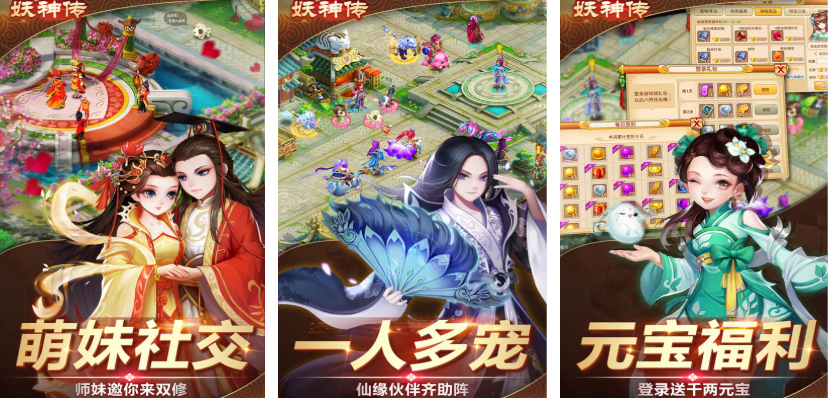 《妖神传》以经典的回合制玩法为核心,不光拥有完善的pvp玩法,还有强大的社交功能,可以与全国各地的好友共同携手在仙侠世界中斩妖除魔。拥有沉浸式的剧情以及高品质的图像渲染技术,画面精美的同时角色造型也特别精美。一人多种模式也方便大家携带宠物到野外探险或刷副本。不刷本的零碎时间还可以去参与钓鱼、答题和猜拳等多种轻松的小游戏。