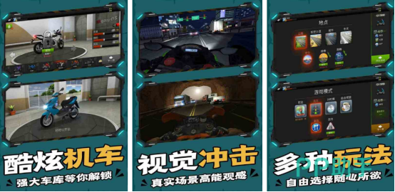 围绕摩托车竞速的核心所创作采用3d的引擎技术,还融入了动态天气系统,在不同的天气变化之下驾驶摩托车时都会遇到不同的体验感,比如在雨天时有可能会改变赛道的摩擦力或者是能见度,其次也可从上百款真实的摩托车中正确挑选,支持个性化改装技术,还融入改装升级的模式,可定期加入排位赛或者是自由旅行模式欣赏世界各地的美景。