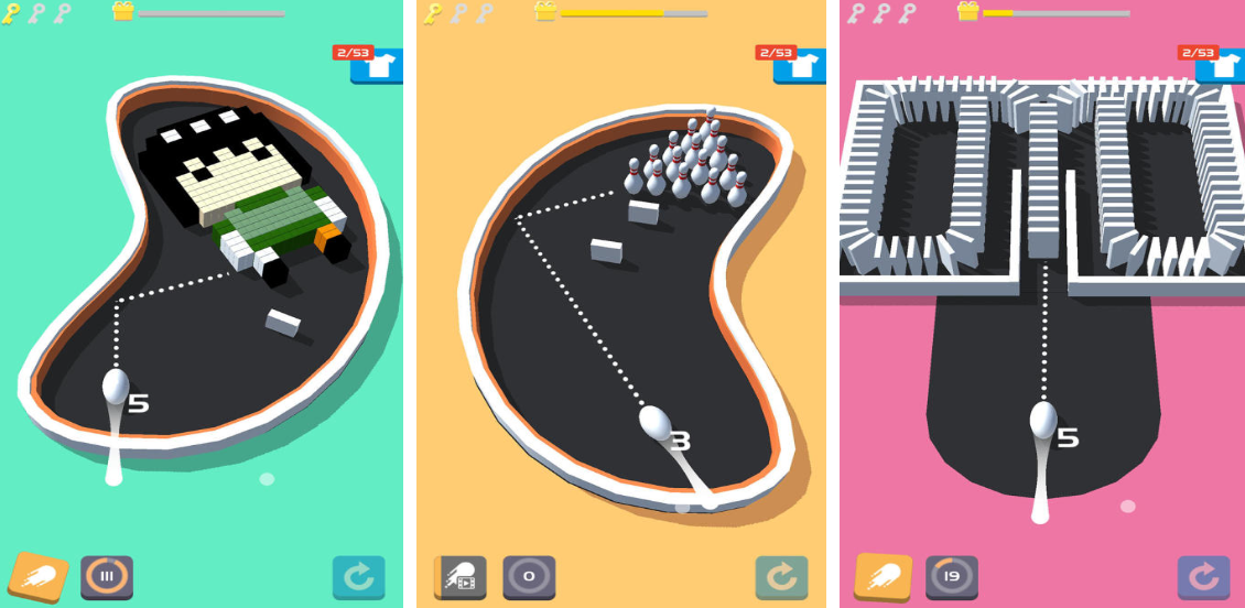 《愤怒的小球》可以通过控制小球弹射的方位来摧毁场景中的障碍物,等到收集一定的星星以后,就可以抵达出口完成任务,其余核心玩法与愤怒的小鸟类似。游戏以超现实的物理弹射为基础,小球的运动轨迹以及碰撞方向也完全遵循物理效果,玩家还可以利用墙体的反馈来实现小球的移动轨。游戏玩法简单粗暴,只要瞄准蓄力发射即可。