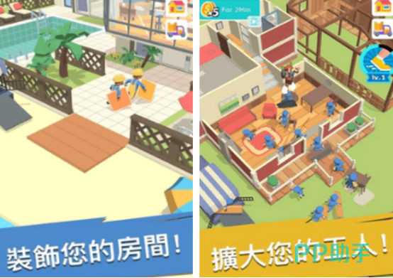 以建造玩法为主,既可以在游戏当中解锁摩天大楼,同时也可以带领着装修团队对各种各样的房屋进行装修,有特别简单的放置挂机玩法,即使没有太多时间的情况下,也能通过这一种方式让他们工作,不断的升级速度以及收益等,能够在完成任务的时候获得最终的收入,具有特别轻松的玩法内容,还有简单的任务。