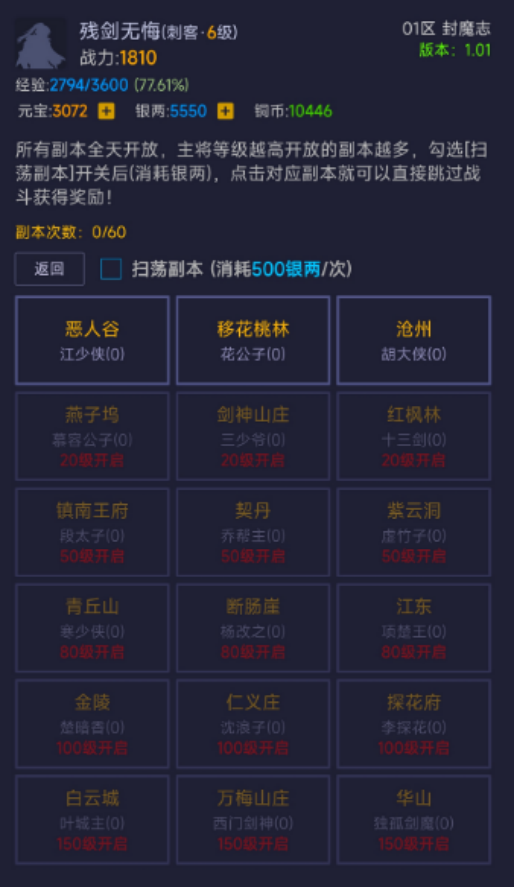有较为出色好又很别致的推图模式,也较为完整的循环升级,采用相当出色的仙侠文字mod模式,全部采用单机玩法,打造出较为出色的冒险之旅,你在这里也并不会错过任何有用的线索,我有众多敌人不断的攻击你,玩家在挑战的过程当中,详细揭露江湖背后的种种故事与真相。