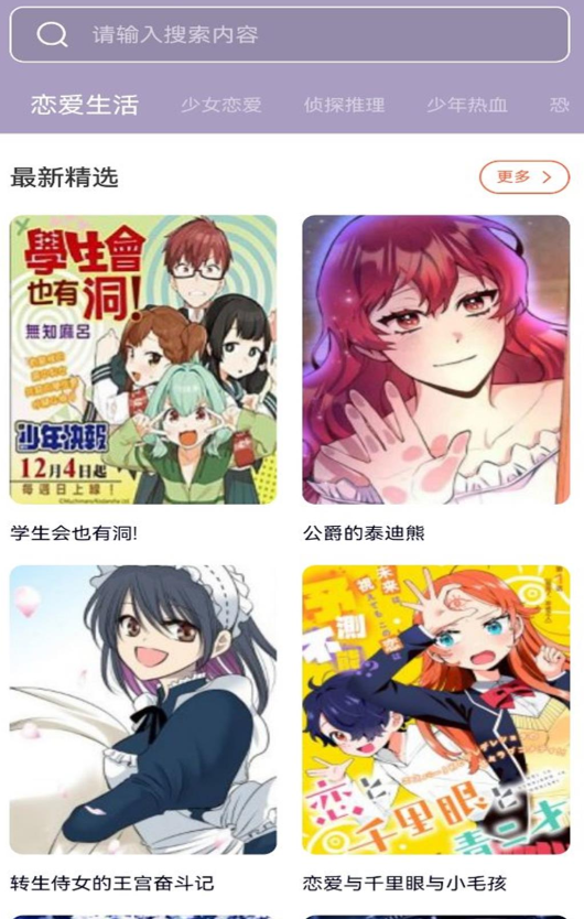 这个漫画的题材比较少,大部分漫画都属于恋爱以及耽美题材的,会看到比较多的帅哥建模,而且剧情方面都是比较甜美的,挺适合女性用户使用的,而且还会经常出现各种精美的海报截图,可供用户们当作壁纸使用,同时平台内免单活动很多,可以观看很多限免漫画。