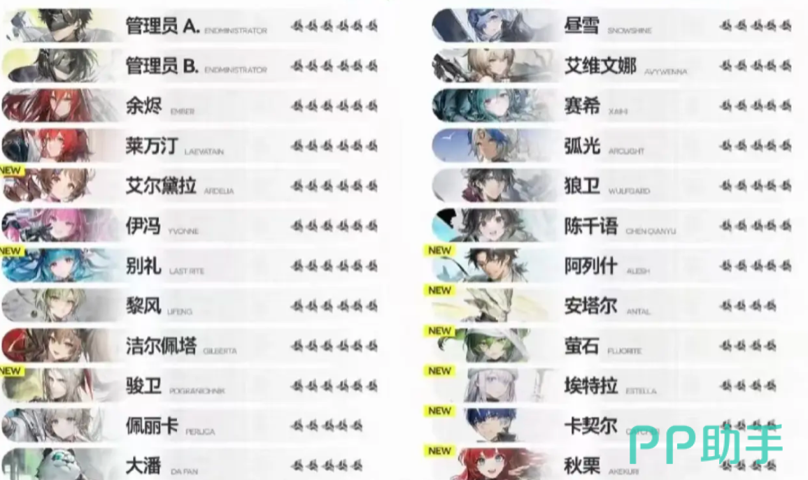 目前游戏内已正式公布全部22名干员,完整名单可参考下图: