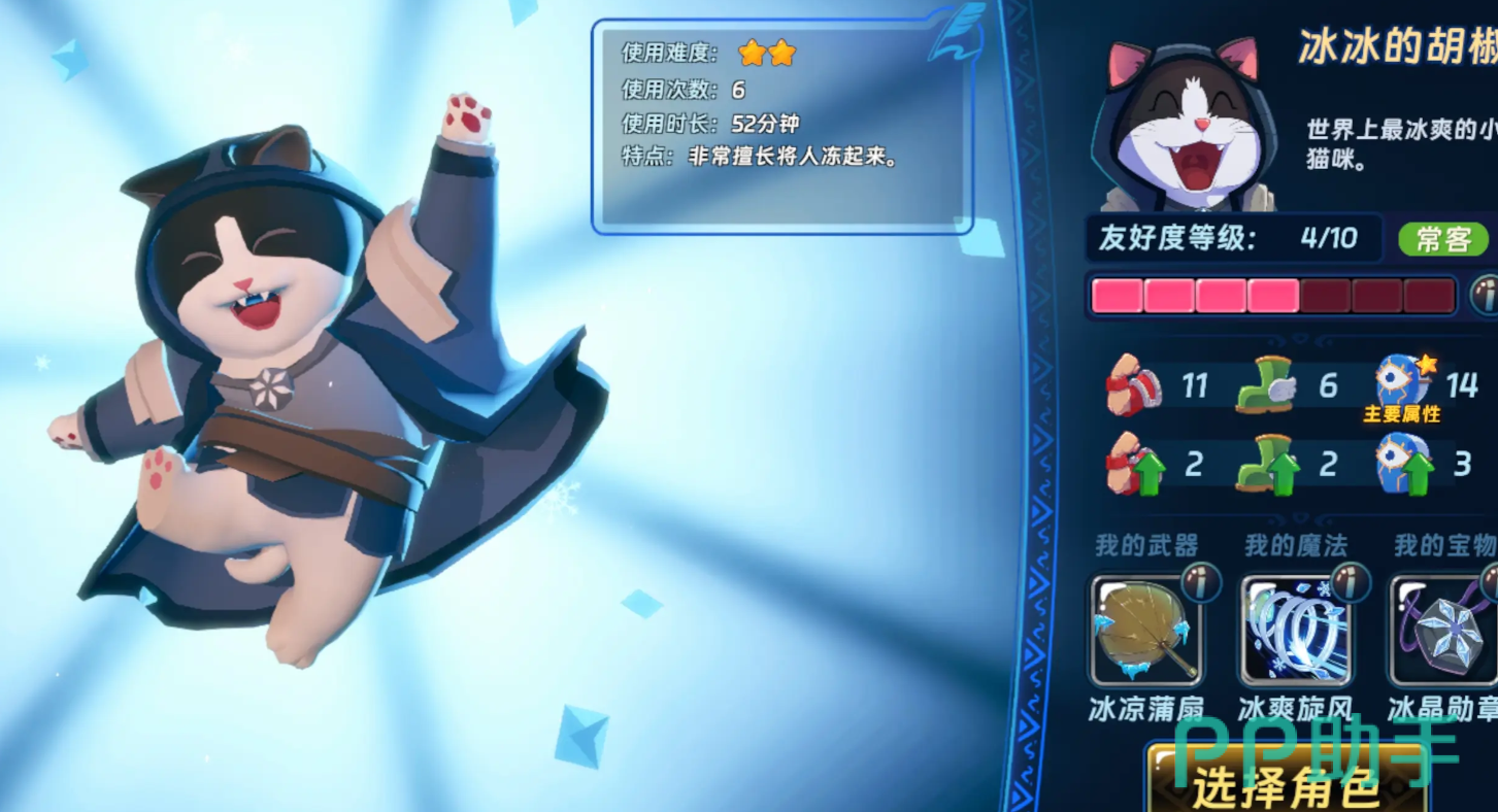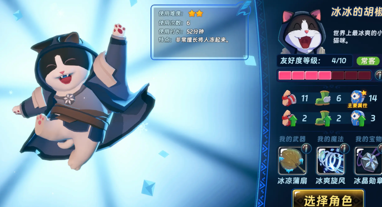外观为猫系角色,普攻消耗2点蓝量,但开局即返还2点蓝量,实现首段零消耗。自带冰法技能可对正前方敌人造成伤害并附加冰冻效果;配合宝物触发冻结后,可激活暗影模仿与星石类攻速增益,达成每秒自动释放大招的效果——单次冻结覆盖半屏,8次连续触发总计造成2800%智慧值的纯大招伤害。此外,普攻附带溅射,溅射可触发符文效果;通过饮用两次饮料补充蓝量并进一步提升攻速后,可实现全屏范围攻击。实战中建议主动拉怪聚拢成线,最大化AOE收益;若承伤压力较大,可启用倔强土灵技能进行伤害分摊。