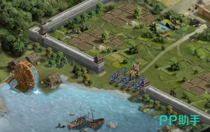 游戏开局以水路行进为引,玩家操控角色乘舟驶向战火纷飞的郡府——许昌。靠岸后需自定义主公名号,随即邂逅红脸壮士(关羽),其与刘备、张飞结义同行,主动助你收复空虚城池。此段剧情即为新手教学起点,系统将通过一场简易攻城战演示核心操作逻辑:部队编组、技能释放时机、兵力损耗控制等。