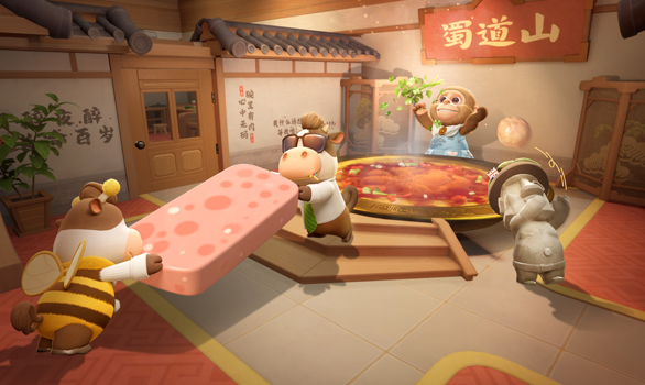 比较出彩的就是小游戏的模式,每一个都有专属的欢乐玩法,在玩了半天之后,一点都不重样。踢炸弹就是很有趣的玩法,可以利用Z轴去完成躲避,还可以配合魔性的音乐,让大家在体验游戏时就会觉得比较有趣。在火锅之王里面就可以和好友一起抢鸡腿,抢香菜,一个不小心就会被对方的操作气象,在互坑的过程中,就可以让友情持续升温。双人乘骑的人体雪橇合作模式,也会比较考验默契。手忙脚乱的操作,往往都会闹出各种笑话。还有大刀40米,更是把沙雕玩到极致。