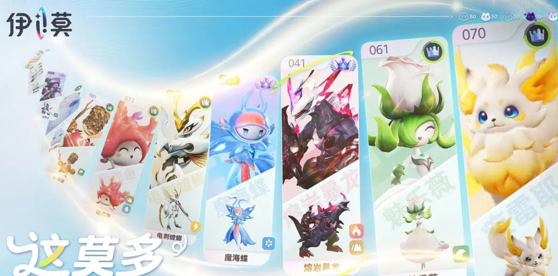 在莫百科式的图鉴系统里,伊莫的形态分支进化成了玩家无尽的收集与培养乐趣。生活区域的不同、天气的变化、特定的进化路径都会使同一种生物呈现出不一样的外形特征。沙滩上的花芽蟹用椰子壳自卫,而海湾形态的花芽蟹因为沉迷晒太阳而变成熟红色,伊莫的成长方向也充满了趣味性。这样非常生动的材质表现和丰富的表情动作,使视线穿透屏幕触碰到蓬松绒毛或者坚硬铠甲的质感。
