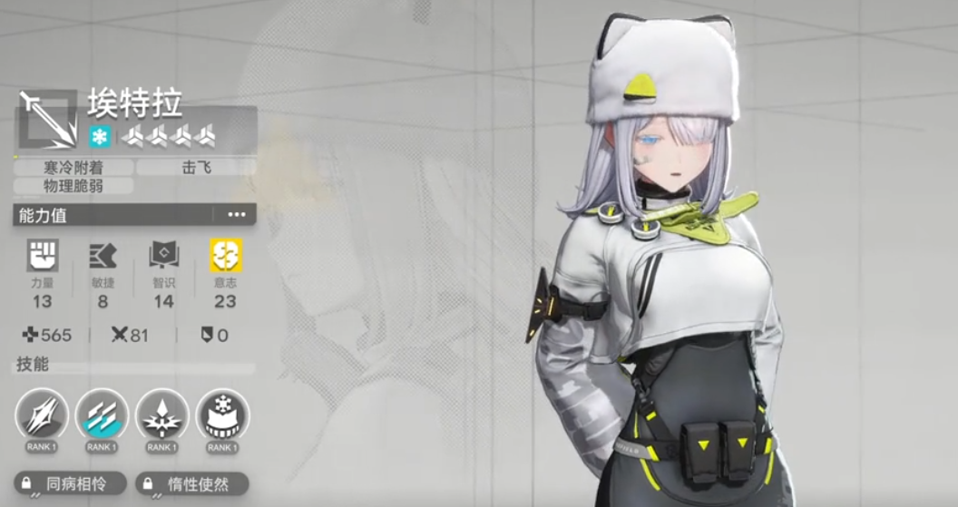这个角色他本身的搭配以及前期开荒都是相当不错,首先就是我们要先认识一下这位新的终末地干员,本身是一个四星干员,职业属于近卫,而它本身的属性却是以寒冷为主,和他的形象还是非常搭配的,本身专长于各种战场上的策略以及潜伏,甚至游戏中对于他的兴趣爱好也介绍得非常详细,埃特拉比较喜欢艺术以及各种益智性的东西,无论是外观形象还是职业,都能看出来,这是一个非常讨喜的角色。