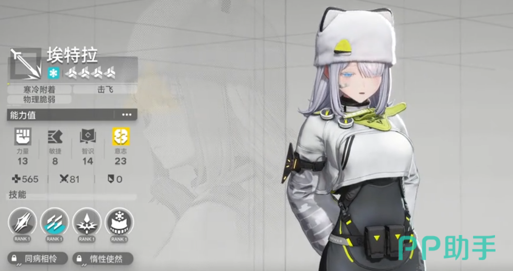 而在对局中埃特拉角色定位一般都是以寒冷辅助为主,本身拥有着一些Buff可以附着在敌人的身上,而且还可以进行击飞,对敌人施加物理脆弱,她的能力本身也是以寒冷减伤为主,技能有两个,一个是同病相怜,当玩家们在对局中触发碎冰效果之后,角色下次使用战技凝声则会返还15的技力,但是这个效果并没有办法叠加。第2个技能惰性使然,这个特性让角色并不会受到寒冷附着的影响,并且角色在面对寒冷伤害时,受到的伤害还会降低20%,整个角色既具有一定的控制能力,又拥有着一定的近战输出,在关键时刻用于突袭敌方阵型非常有效。