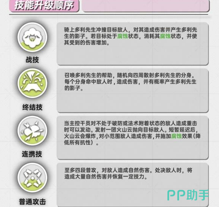 先说说技能培养这块吧。艾尔黛拉有几个技能,但优先级其实很明显。战技应该放在第一位去升,因为这是她主要的治疗手段。这个技能让多利先生冲撞敌人,造成伤害的同时,还能消耗腐蚀状态,提升敌人受到的伤害。实战中用起来非常频繁,升级收益最高。终结技排第二位,虽然不是主要治疗来源,但能提供群体输出和爆发性的治疗,重要时刻很管用。至于连携技,主要作用是给敌人挂腐蚀效果,降低抗性,优先度相对低一些,可以放到后面慢慢升。普通攻击就是四段攻击,打出自然伤害。比较有意思的是,击杀敌人时会恢复技力,这点在清小怪的时候还挺实用。不过普攻主要还是用来,打伤害和回能量,治疗方面还得看战技和终结技。