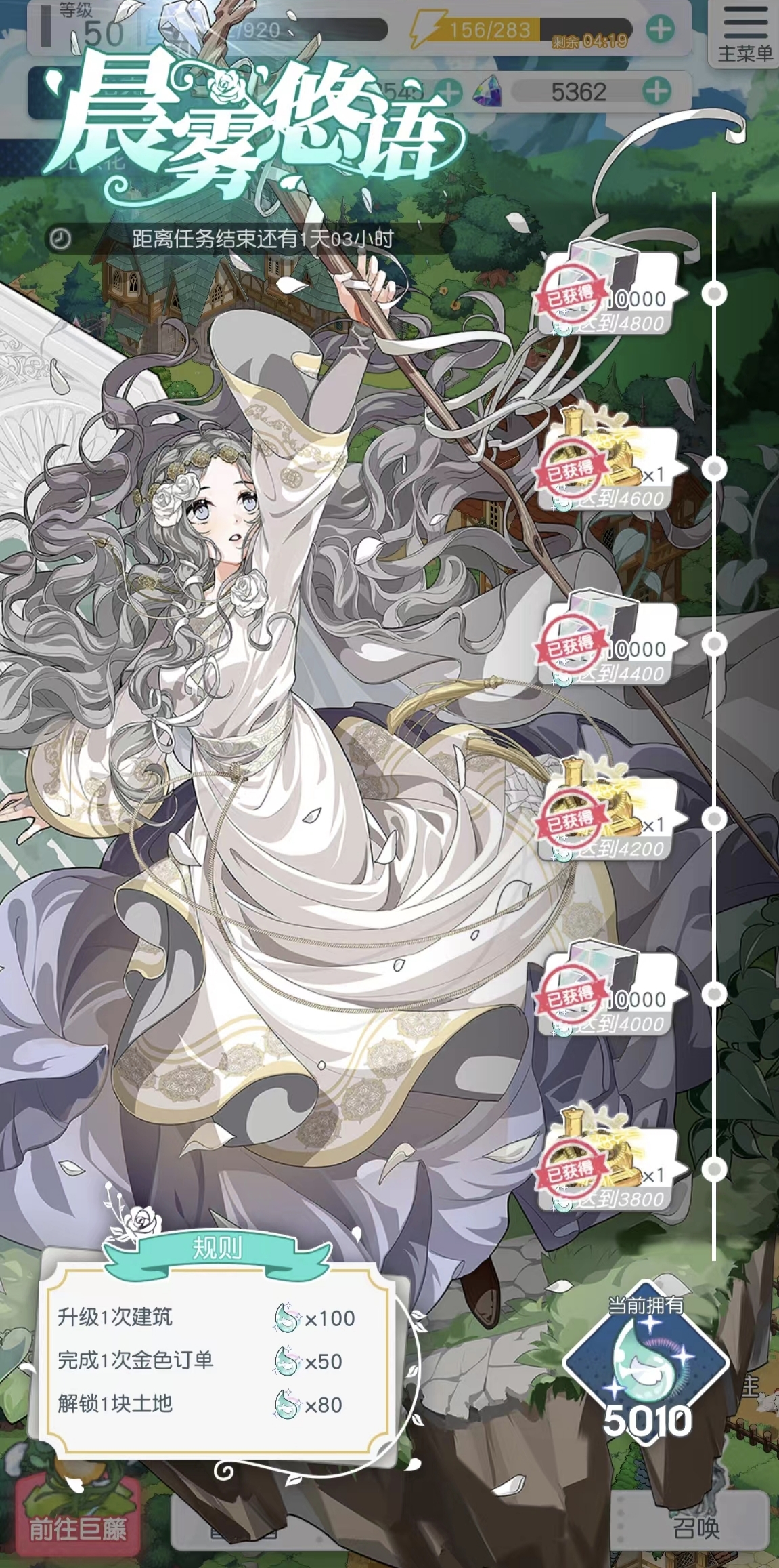 晴空双子游历,在游戏的玩耍过程中,玩家要在每天的购置选项中,要保证资源最大化的获利,游戏还设有很多的试炼活动。比如女神、幻影球、星座、鸣铃试练等,玩家可以储备一些适应这些活动的道具,当限时活动开始的时候,使用这些道具可得到另外的奖励。