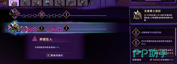 喜欢主动攻击的朋友可以关注无畏勇士刻印。防御状态下按一下攻击就可以发动无畏冲锋,在重击敌人的同时,还可以根据移动的距离去附加额外的伤害。一急时冲锋过程就能灵活地改变方向,针对三米范围内的目标都可以造成25%的伤害提升。同时还会拥有狩猎巨人的效果,针对首领级的怪物就会有额外6%的增伤。喝下炼金灵药之后,还能获得灵药回复量大概4%的临时护盾,可以有效提升续航的能力。搭配投掷强化的效果,投掷攻击伤害就可以增加6.0%。