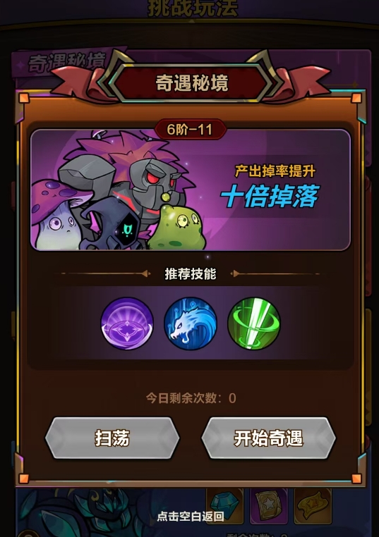 目前装备的获取主要通过刷怪、挂机来获取,且玩家所能获得的装备品级与关卡层数直接挂钩,玩家挑战的关卡层数越高,越容易获取到更好的装备。要注意的是,挂机是能直接帮玩家扫荡已通关的最高难度关卡,所以各位因迟迟刷不出好装备而被迫卡关时,可直接用体力在挂机里扫荡,好快速完成装备的刷取,无需自己亲自前往关卡战斗。该方法没有使用次数上限,只要玩家有体力就能一直用此方法来刷取装备。同时,历练玩法里的奇遇秘境有着产出掉率提升十倍的效果,每天可挑战3次,是太古、远古装备的主要来源。