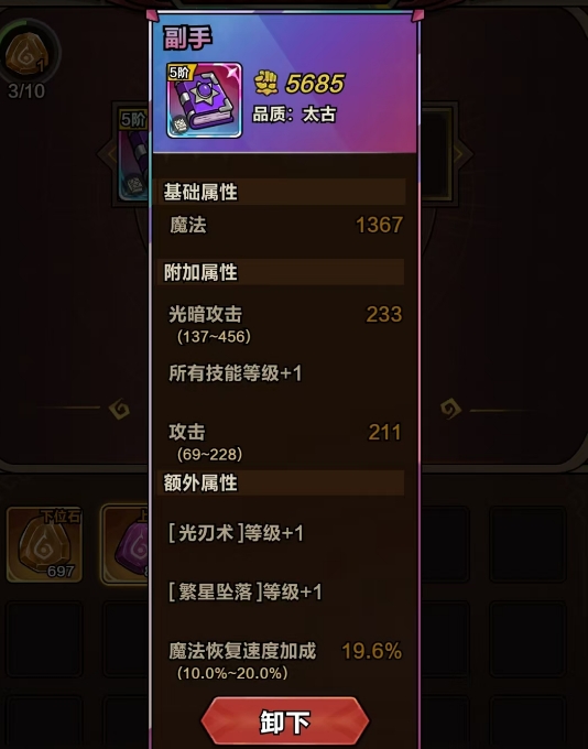 每位玩家都能在剑与黎明里为角色穿戴上十件不同部位的装备,每个部位的装备除了会通过主属性为玩家带来数值加成外,它还能通过附加属性和额外属性,来为角色提供各种强化效果,并且附加属性和额外属性都可以通过洗练来更改为自己想要的强化效果。其中,附加属性洗练需要用到上位石,额外属性洗练需用到下位石。洗练时,每次只会更改一条属性的效果,且装备可无限次进行洗练,即便玩家进行了洗练效果的替换,依旧能继续通过洗练来更改其它的词条效果。若不想某条词条被洗练走,可锁定该词条,但锁定后再进行洗练时,会消耗额外的道具。