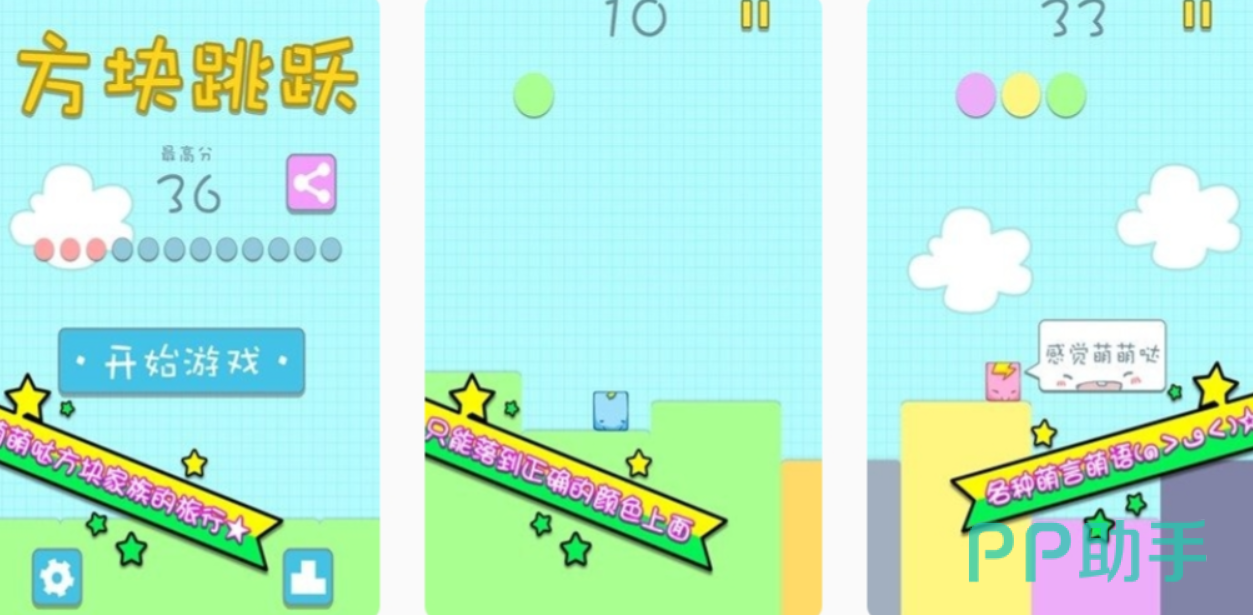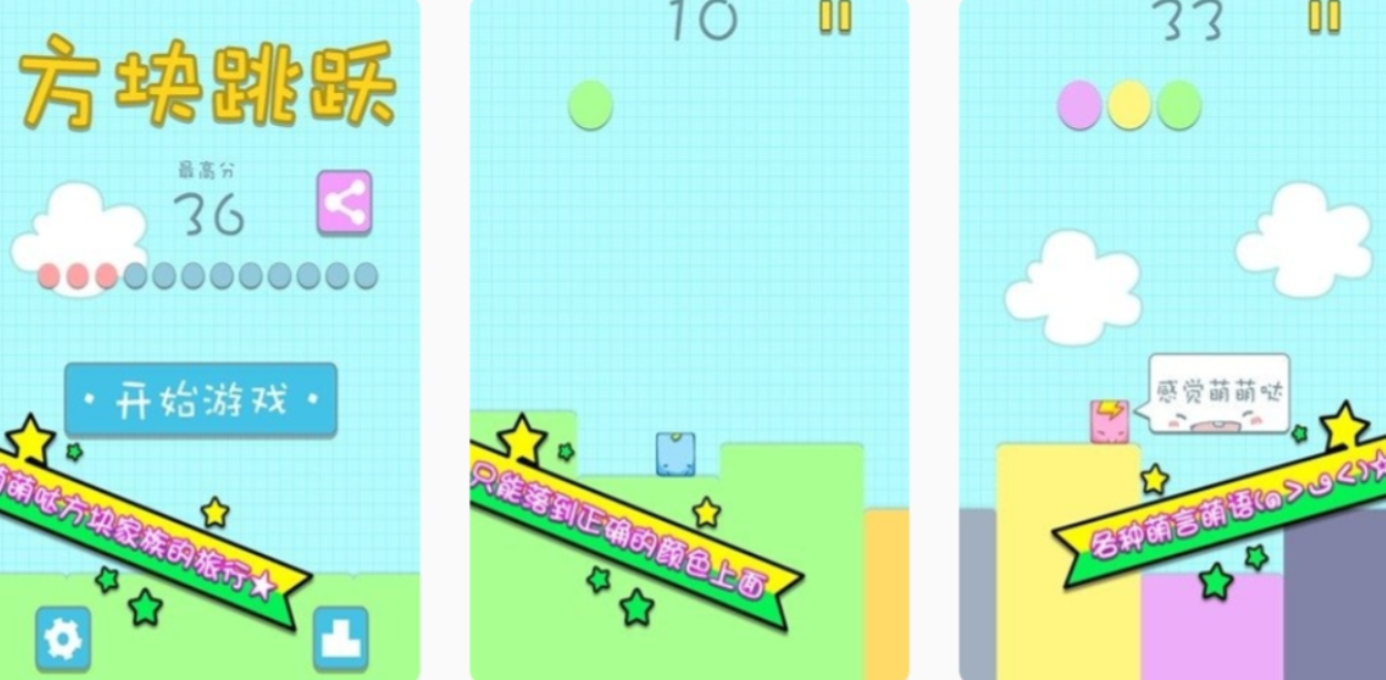 当平台不断的变幻,颜色成为了游戏整体的游玩基调,玩家们需要不断的控制小方块跳跃、安全落下,既然颜色竟然是最重要的,那么玩家们就千万要注意,只有符合规律的颜色,才能够成为一块安全的落地点,反之,玩家们将会变身变成彩屑,直接消失,12种颜色轮换,玩家们的注意力也将需要死死集中,在关键的那一刻跃上平台。