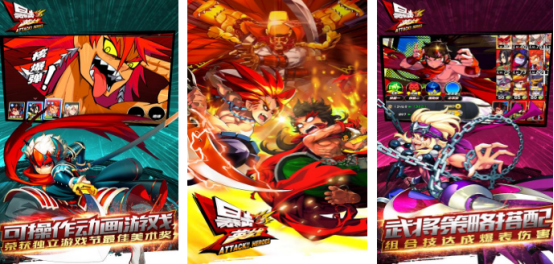 热血的格斗为主要核心,在三国题材的背景上所创作,还可看到很多动画当中的经典场景,以及流畅的战斗体验。各种精美的人物角色都等大家来操控,就比如关羽和张飞都采用女性化的方式所设计,色彩鲜明,动作更是特别夸张,大家用手指点击屏幕上的控制按键,就可以释放出技能,还可降低操作门槛。在参与热血对战的过程当中,都可以携带5名武将一起加入,通过自动轮换的方式释放自己的技能。