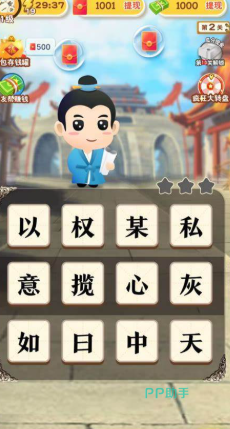 字块挪转拼成语,国风雅韵浸其间,玩法创新融合传统华容道与成语文化,玩家滑动汉字方块,将混乱字符重组为完整成语,既考验空间思维与手速,又能通过拆解组合加深对成语结构的记忆,画面采用简约中国风设计,笔墨质感搭配悠扬古风背景音乐,营造出雅致的文化氛围,在趣味挪转中感受汉字与成语的独特魅力。