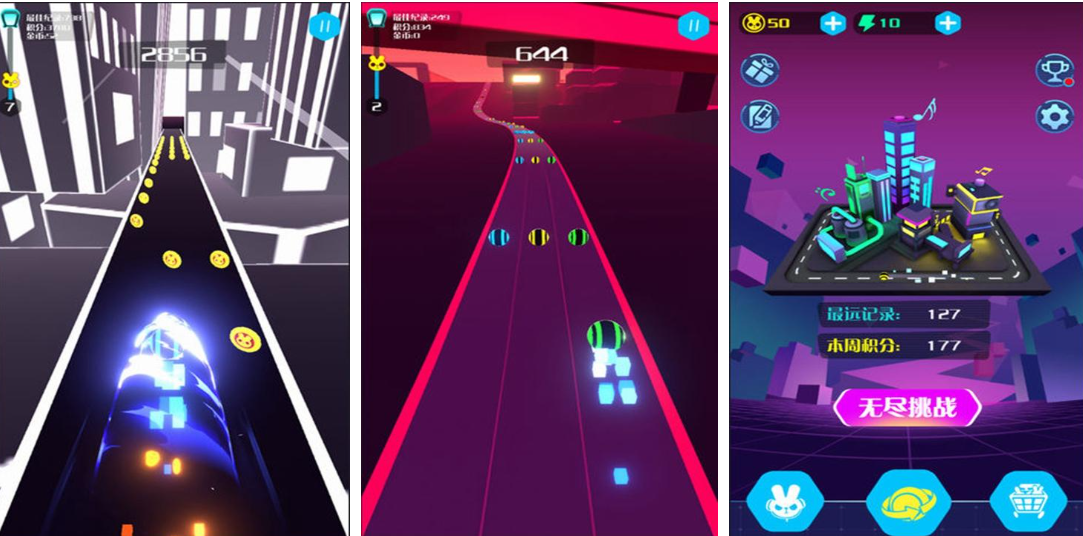 本作深度融合电音节拍与滚球物理引擎,关卡节奏严格对齐BGM鼓点,形成“听声预判—瞬时操作”的强反馈循环。美术风格采用高对比度赛博朋克视觉语言,金属质感平台、霓虹粒子轨迹与动态视差背景共同构建出未来感空间。小球皮肤系统支持自由切换,每款均具备独立光效与碰撞反馈,不依赖充值即可通过日常任务获取全部基础外观。