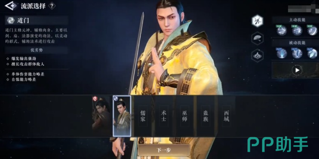 游戏设四大基础职业体系,各具战术定位与操作维度:武夫侧重近战机动性,可自由切换刀、枪、拳、套四类武器形态,技能组合强调节奏压制与位移突袭;道门专精范围伤害(AOE)与远程清场,拥有高爆发输出能力与群体控制链,适用于高密度敌人环境下的快速推进。