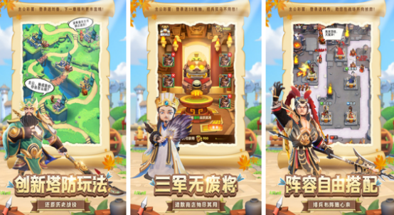 以三国历史为背景的策略塔防手游,主打5v5全自动对战模式。玩家需提前配置武将阵容与防御塔类型,应对敌军多路线突袭。武将池超百名,含诸葛亮、吕布、华佗等标志性人物,各具专属机制——如华佗提供群体治疗,吕布覆盖大范围物理伤害。在传统塔防框架中融入Roguelike元素,支持单人闯关与多人竞技等多种玩法形态。