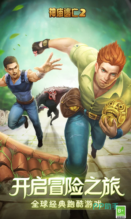经典跑酷续作,延续俯视角无尽奔跑结构。操作聚焦于左右滑动闪避、上滑跃障、下滑钻隙三类基础指令。身后怪物持续追赶,角色速度随时间线性提升,形成天然压力曲线。障碍组合随机生成,涵盖断桥、藤蔓、滚石等多样化地形元素,强化重复可玩性。