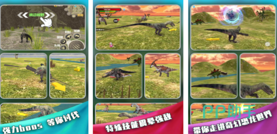 采用“体型压制+阶段进化”为核心机制,玩家操控小型掠食者起步,通过吞噬更弱小的生物积累能量,逐步进化为迅猛龙、异特龙乃至霸王龙等顶级掠食者。每种形态对应独特技能树与环境适应能力,例如攀爬岩壁、潜行水域或震击地面造成范围眩晕。击败敌对恐龙后可拾取其掉落的骨骼、鳞甲与稀有装饰部件,用于自定义外观与强化属性。
