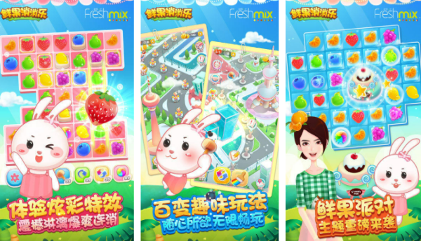 主打极简规则与强竞技节奏,在传统水果三消基础上拓展时间竞速与无尽生存两大模式。前者考验单位时间内的爆发输出能力,后者侧重持续反应与连击稳定性。新增“水果合成”系统,例如三颗苹果合成草莓,赋予基础消除更多策略维度,降低随机性,提升掌控感。
