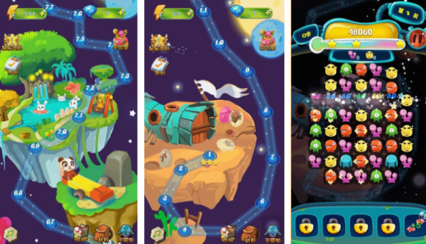 以太空探索为世界观框架,消除对象替换为星球、陨石、能量核心、飞船模块等科幻元素。通关进度同步解锁新星系、升级飞船性能、修复受损系统。特效融入激光束、引力场、能量脉冲等视觉语言,关卡目标紧密关联宇宙叙事——如收集稀有矿物、重启生态舱、校准跃迁坐标,增强故事沉浸感。
