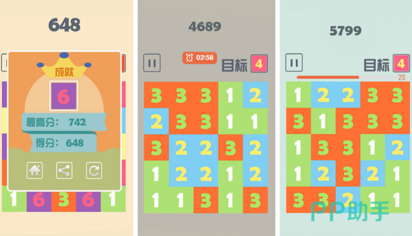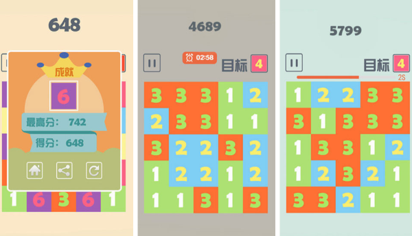 融合数字逻辑与滑动消除机制,灵感源自2048玩法。玩家通过横向或纵向合并相同数字生成更高数值,并触发范围清除效果。关卡设计借鉴数独的空间推理逻辑,强调行列关联与预判布局,满足喜欢轻度烧脑、追求思维清晰度的玩家需求。