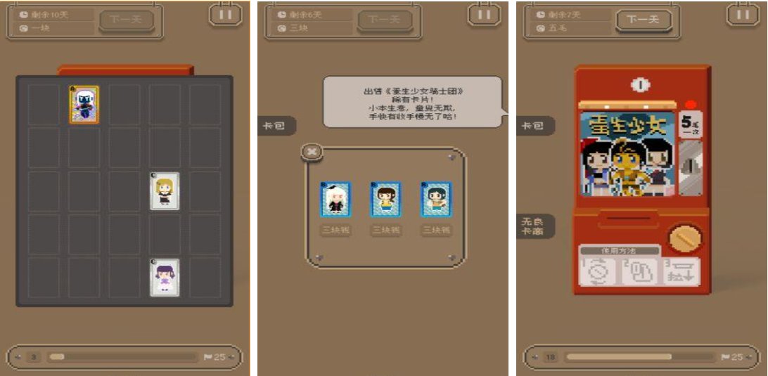 一款像素风卡牌策略手游,核心机制为自动战斗+阵容构筑。所有角色均以Q版像素小姐姐形象呈现,技能效果与站位逻辑影响战局走向;卡组构建依赖抽卡与合成系统,支持多套流派尝试;竖屏操作简洁直观,节奏紧凑且具备一定成长深度,适合偏好策略思考与轻度养成的玩家。