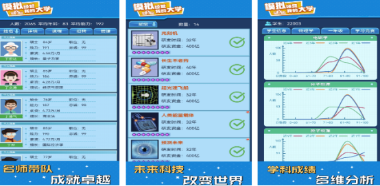 聚焦高等教育机构的全周期建设过程,玩家需主导大学选址、功能区规划及基建落地,包括教学楼、实验室、图书馆等核心建筑的布局与迭代。同时兼顾财务统筹、招生政策制定、专业体系搭建与教师团队组建,并可通过调节课程难度提升整体学业表现,实现高校可持续发展。