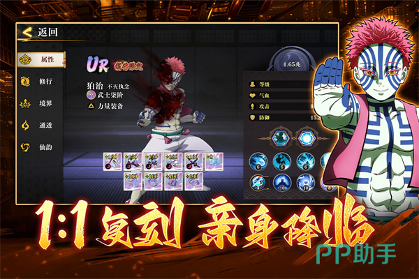 该作深度还原《鬼灭之刃》原作动作韵律与角色设定,在卡牌框架下实现动作策略化表达。每位鬼杀队员均配置常规技与呼吸法双技能系统;经典恶鬼形象严格参照原著建模复刻。主线与支线产出的强化材料可直接提升角色基础属性与技能等级,构建起清晰可见的成长反馈链路。