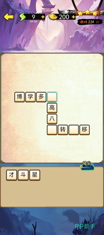 专注传统文化体验,以成语填空为基本玩法框架。题目按难度分级呈现,涵盖常见典故与生僻词汇,答对完整成语方可进入下一关。Q版国风美术风格细腻柔和,字体设计融入水墨元素,兼顾知识性与审美体验,是寓教于乐型产品的典型代表。