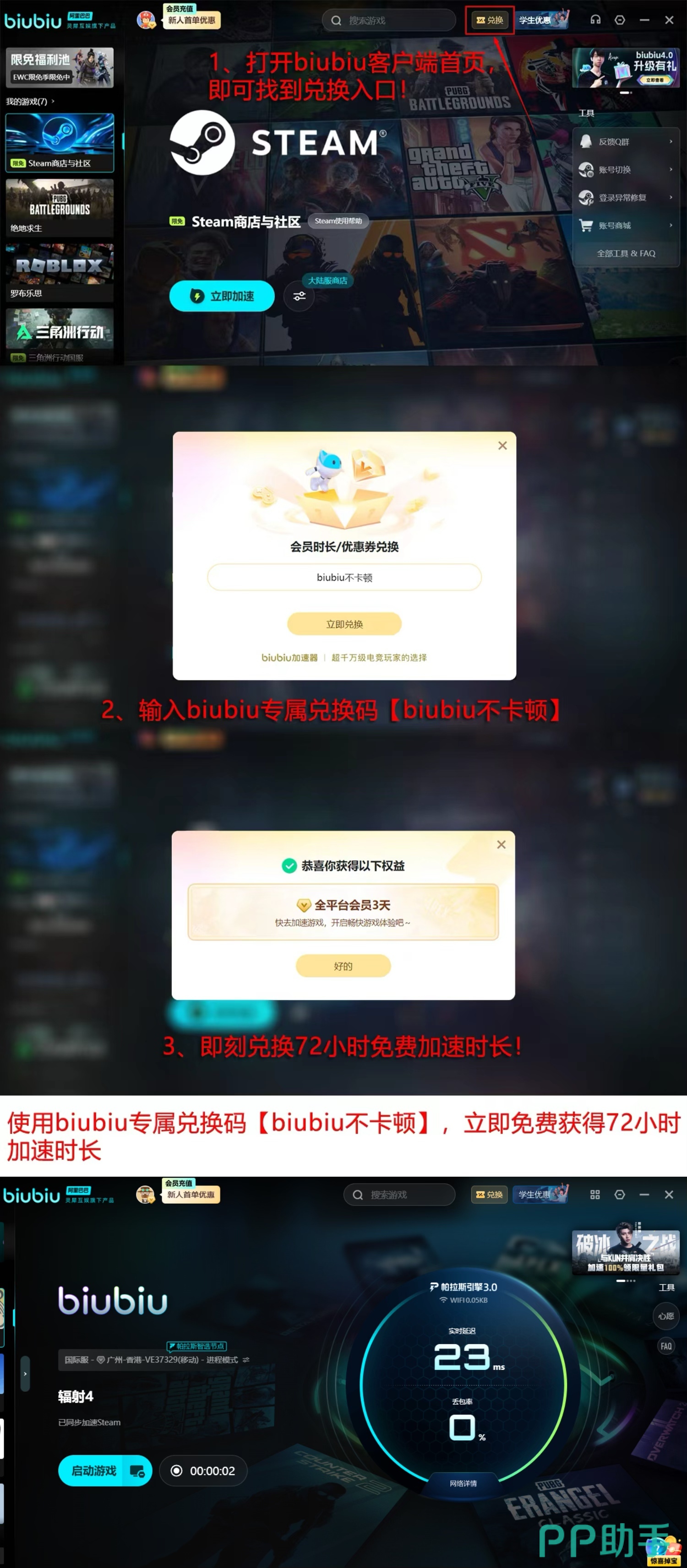针对当前遭遇加载异常的玩家,建议优先进行实测验证。新用户注册biubiu加速器后,系统将自动发放24小时全平台加速权益;所有用户还可凭兑换码【biubiu不卡顿】领取额外3天加速服务,无需绑定支付方式即可生效。