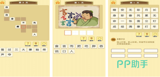 采用高清国风美术风格,每关通关后即时展示对应成语的出处、释义及典型用法。关卡采用渐进式设计,共设6000余关,配合称号体系、成就徽章、典籍图鉴等成长激励机制。新增“看图猜成语”玩法,通过图像线索辅助理解,提升记忆效率与语境应用能力。