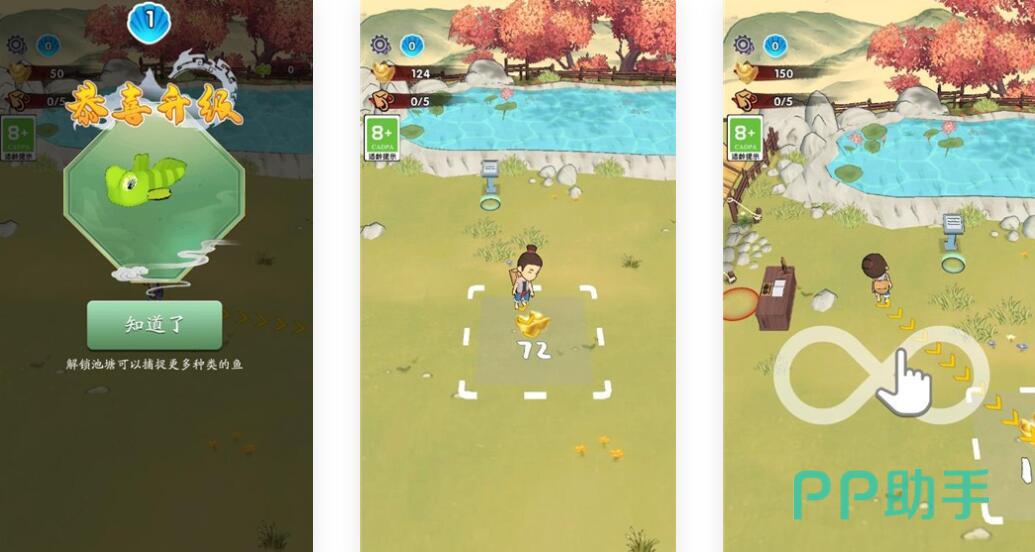 本作融合模拟经营与合成策略,玩家化身渔场管理者,投放基础鱼类并观察其自然成长产金;通过两两合成逐步升阶,最终达成鲲形态解锁。全程支持全自动挂机,离线状态下渔场持续产出金币。美术采用清新卡通风格,界面配色明快柔和,长时间游玩不易视觉疲劳。