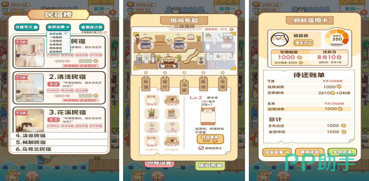 游戏提供公寓、别墅、写字楼三类不动产资产,对应差异化定价策略与装修方案。玩家需结合区域供需关系动态调整租金水平,并依据租户职业特性定制空间功能。每位签约住户均配有独立背景故事,可通过对话解锁剧情片段。任务系统贯穿全程,完成指定目标即可获取金币、成就点数及房屋升级材料,持续强化经营深度。
