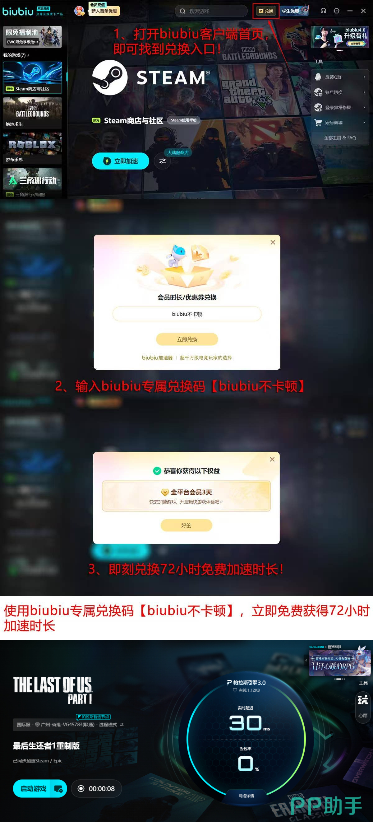 当前正值biubiu加速器开放体验窗口期,新用户完成注册即可立即获得24小时全功能免费试用权限;输入激活码【biubiu不卡顿】,还可额外解锁72小时深度加速时长,累计享96小时无限制网络优化服务,亲身体验低延迟、零丢包状态下的稳定运行表现。