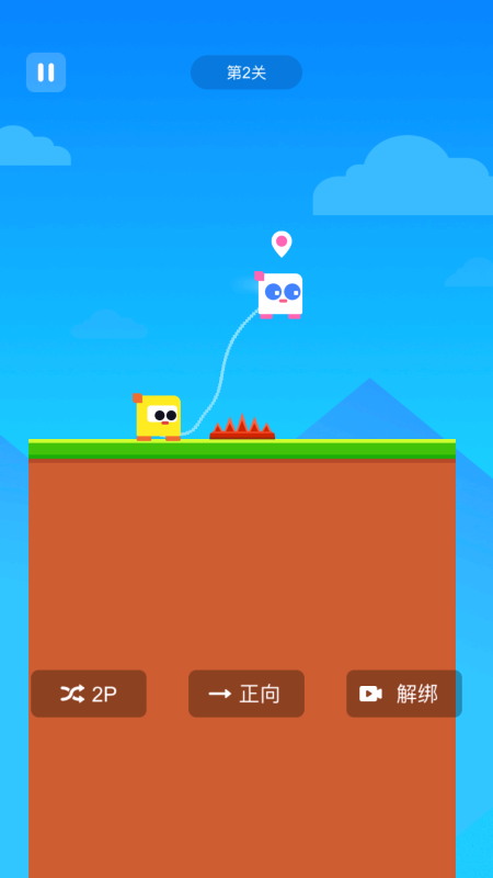本作采用极简触控机制:仅需点击或长按屏幕控制角色起跳高度与滞空时间。两位角色由一根物理绳索连接,任一端的动作都会实时影响另一端的位置与动量。关卡设计强调同步性与预判能力,例如需一人高跳触发机关、另一人借力跃过深渊。全程无需复杂指令,却对配合精度提出较高要求,是锻炼默契的理想选择。