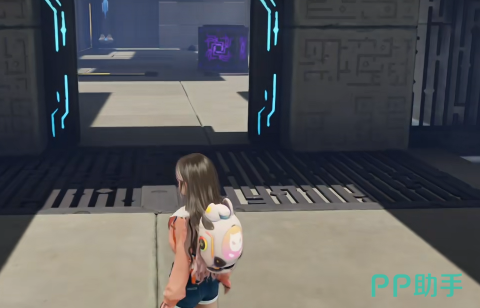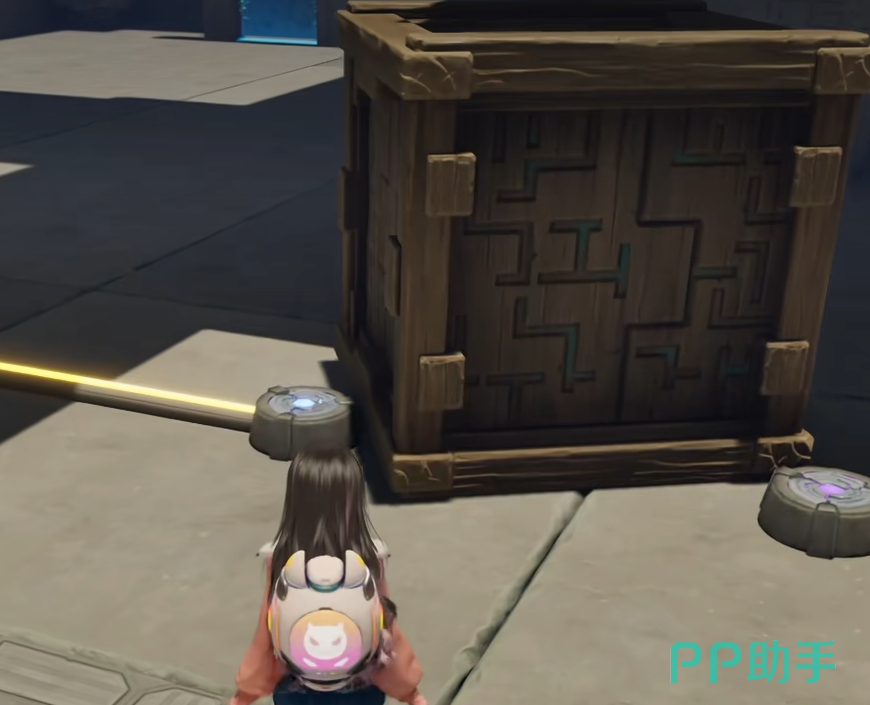 进入副本后沿主路前行,前方将出现首个紫色方块电箱。靠近后触发交互,可拾取并手动拖动该电箱,将其准确安放于地面标定的电源导轨上——位置偏差超过容错范围将导致大门无法开启,建议微调至完全贴合导线路径后再确认放置。