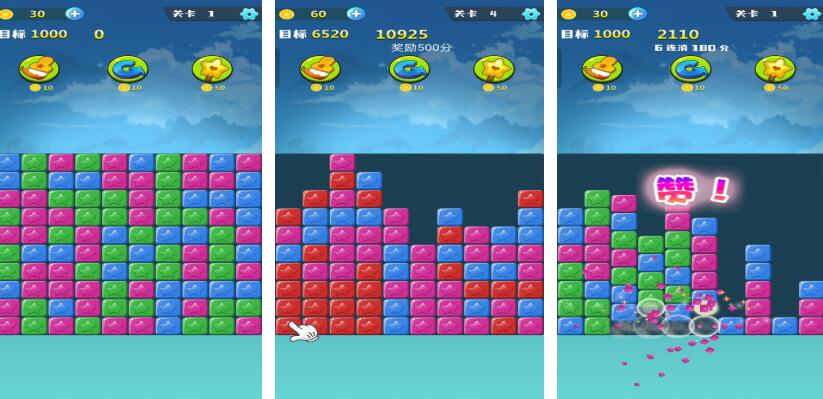 本作采用七种高对比度色块构成基础组件,通过横向滑动调节栏完成列式消除。每成功清除一整列即可获得对应积分,随着游戏进程推进,方块下落速率呈阶梯式提升,对反应速度与空间预判能力提出持续挑战。界面采用高饱和度配色方案,在强化视觉识别效率的同时,也提升了整体解压属性。