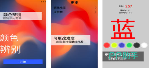 本作聚焦基础色觉辨识训练,通过动态调整色块饱和度、明度及背景干扰强度,构建渐进式难度体系。支持自定义关卡参数,适配不同视觉敏感度水平。界面采用低频闪烁设计与高对比文字组合,减少视觉疲劳,符合视觉康复中“可控刺激”原则。适用于需强化红绿蓝三原色识别能力的弱视初阶训练者。