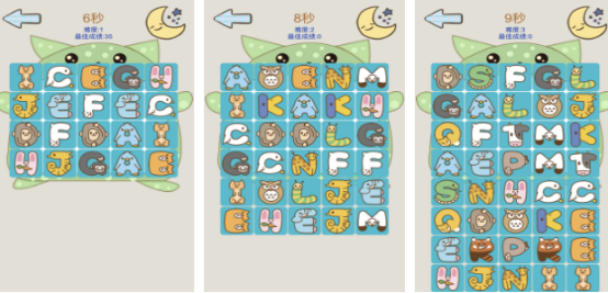 专注短期记忆训练的记忆配对游戏,采用渐进式难度体系:初级为6对卡牌,随等级提升至最高20对。每局开局提供10秒观察时间,随后全部翻面,玩家须凭记忆完成图案匹配。计时与步数双重维度评估表现,有效激活海马体相关认知功能。